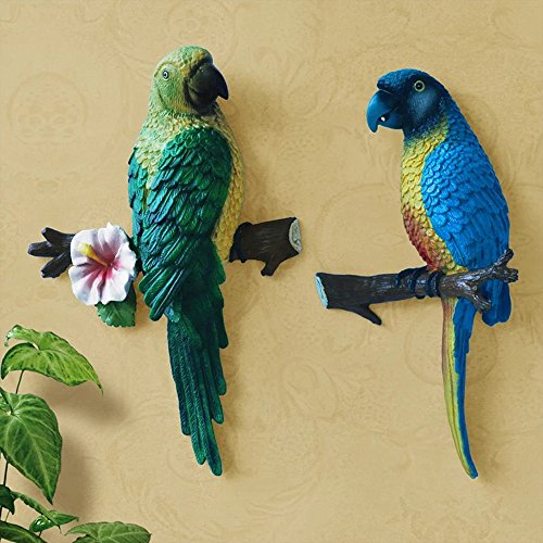 MTinHD Macaw Tropical Parrot Sculpture Blue Bird Wall Decorations