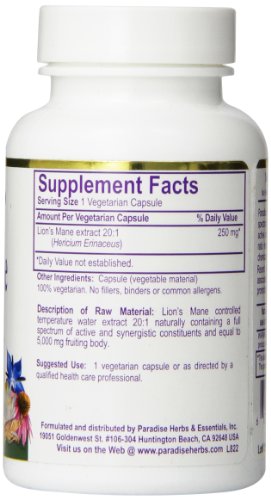 (Paradise Herbs)/Vitamins Dietary Supplements/Herbal Supplements/DIRECT FROM USA/Paradise Herbs Vegetarian Capsules, Lions Mane, 60 Count