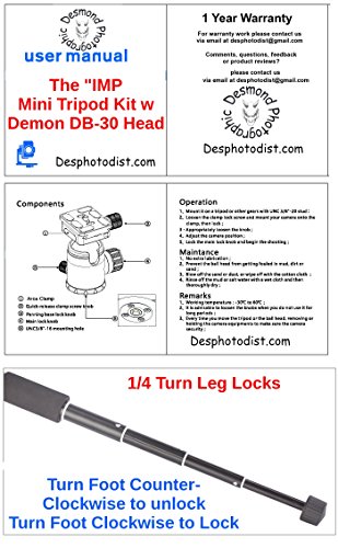 IMP Mini Tripod Kit w Demon DB-30 Ball Head Arca Compatible with Pan Lock & QR Plate Desmond