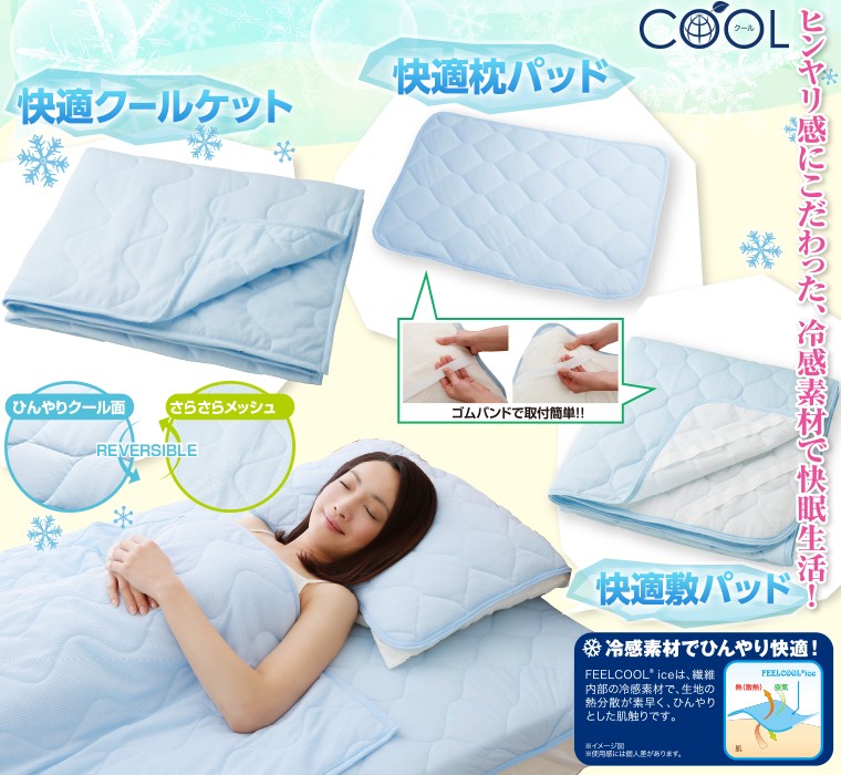 ひんやり感にこだわった快眠まくらパッド!サラッとした肌触りで寝苦しい夏の夜も快適に!■冷感素材でひんやり快適!■サラッとした肌ざわり!■ゴムバンドで取付・交換も簡単!■洗濯機で丸洗い可能!●商品サイズ:よこ約63cm×たて約43cm●素材本体表側:ポリエステル65%・ナイロン35%本体裏側・パイピング:ポリエステル80%・綿20%本体中わた・ゴム:ポリエステル100%【ご使用上の注意】・洗濯の際は洗濯ネットを使用し、洗濯表示をご確認ください。・火気のそばや高温多湿な場所、直射日光の当たる場所には保管しないでください。・本品は接触冷温感性にすぐれた繊維を使用しておりますが、本品自体が冷たくなることはありません。・快適さの感じ方には個人差があります。