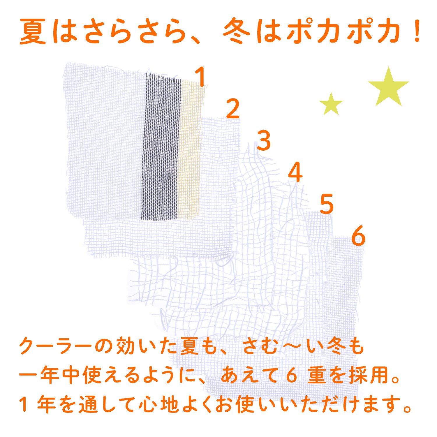 【6 gauze】 We adopted a six-fold dare to allow us to use the cooler during summer as well as in the cold winter.