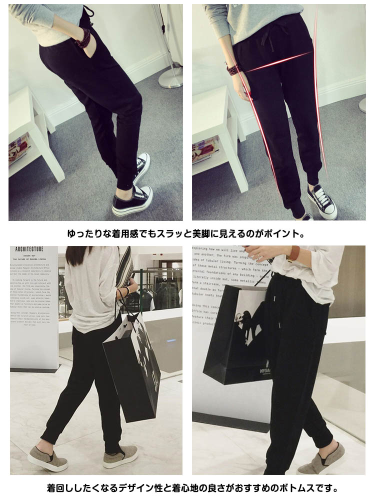 | スウェット生地を使用したキレイめジョガーパンツ。ウエストはゴムと紐で調節が可能なので着心地がよく着脱も楽々。裾のリブがカジュアルだけど、生地感が程良くラフさを抑えて、大人なスタイルに!ゆったりな着用感でもスラッと美脚に見えるのがポイント。着回ししたくなるデザイン性と着心地の良さがおすすめのボトムスです。 | |