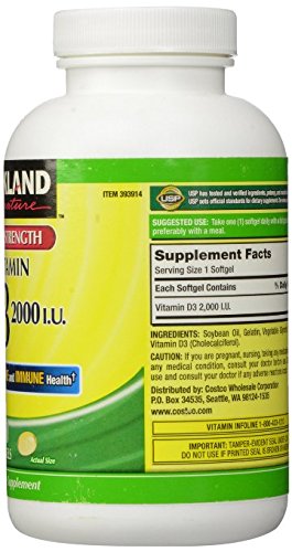 -. Binding : Health and Beauty -. Brand : Kirkland Signature -. EAN : 0725873860192 -. Feature : Supports bone, colon, muscle, immune and breast health / D3 can do amazing things for you and your body to keep running in great health / Dietary supplement -. Label : Kirkland Signature -. Manufacturer : Kirkland Signature -. PackageQuantity : 1 -. ProductGroup : Health and Beauty -. ProductTypeName : HEALTH_PERSONAL_CARE -. Publisher : Kirkland Signature -. Size : 2 Pack (1200ct) -. Studio : Kirkland Signature -. Title : Kirkland Signature Extra Strength Vitamin D3 2000 I.U. 600 Softgels, Bottle (Pack of 2) -. UPC : 725873860192