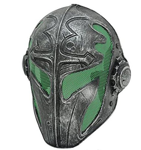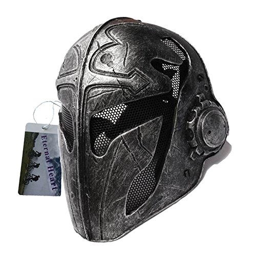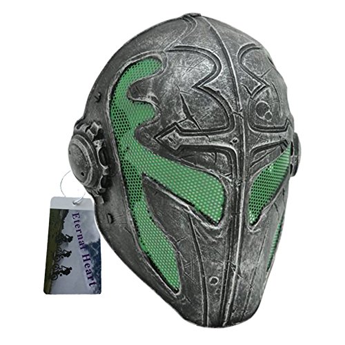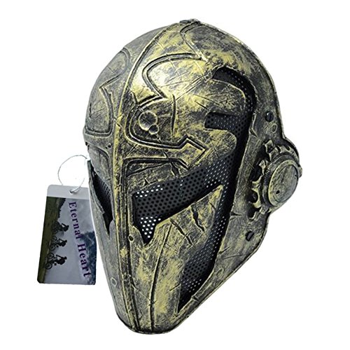 -. Binding : Misc. -. Feature : High strength glass fiber composite materials, withstand the hit of high power. / Ergonomics design provides comfortable and breathable wearing condition / Comfortable cushion pads are located inside the mask,Carefully design to allow space between mask & month for easy breathing,easy to wear helmet, earphone and you can wear glasses inside mask / Mask Goggles comfortable fit and safety for your head/Spider-type 5-point flexible strap with buckle contoured designed at back / Mesh wire goggle lens offer a high protection with clear sight -. IsAutographed : 0 -. IsMemorabilia : 0 -. Label : Eternal Heart -. Manufacturer : Eternal Heart -. ProductGroup : Sports -. ProductTypeName : SPORTING_GOODS -. Publisher : Eternal Heart -. Studio : Eternal Heart -. Title : Tactical Full Face Protection Knight Mask Templar