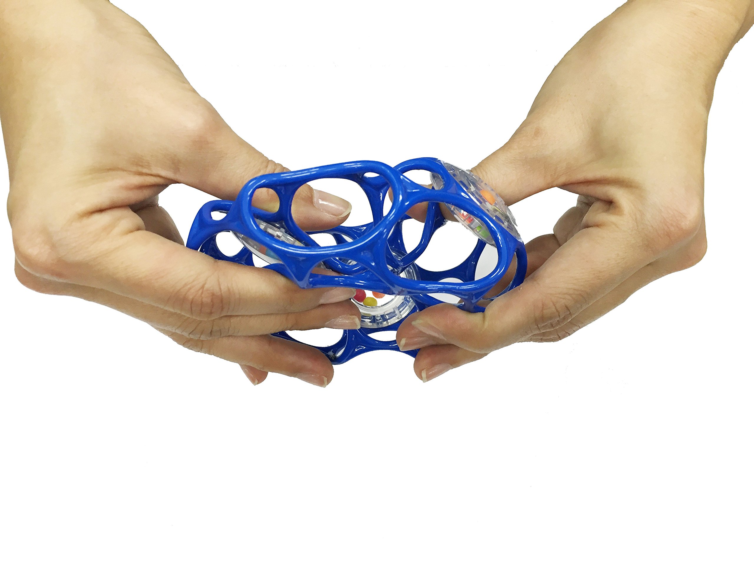 Ohball became a rattle in a reticulated form that the baby grips naturally.