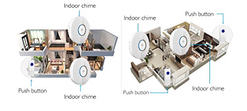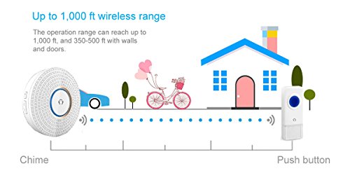 -. Feature : Easy Set Up: Broken doorbells are hard to replace. With Chimptron's energy-saving wireless doorbell, installation is simple. Our receiver and transmitter are pre-paired for installation. / 52 chimes (16 chord) to choose from and 4 steps volume control (25~110dB). / IP44 waterproof transmitter with soft silicon press button, it is able to withstand rain or shine. / With up to 1,000 ft operating range in open space, 350-500 ft audible range. / Easy to choose your change and select your favorite ringtone with forward and backward button.
