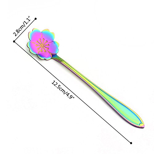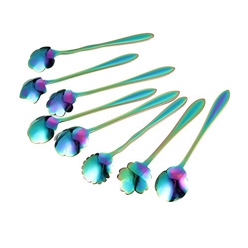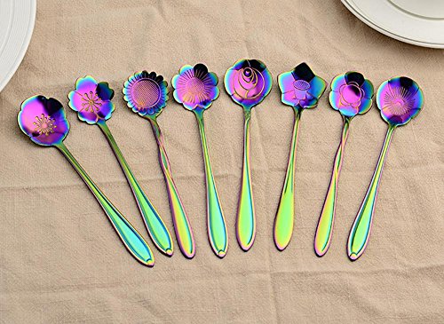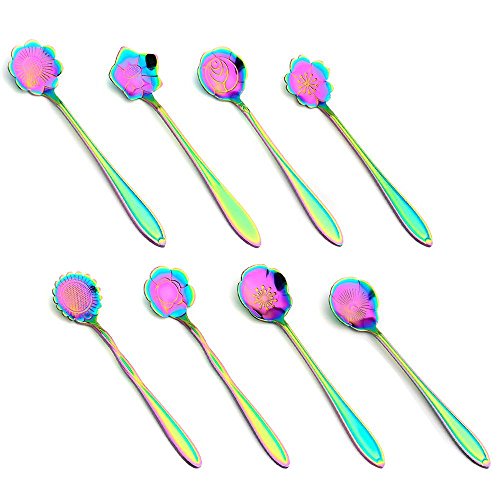 Flower Spoon Set, niceEshop(TM)Stainless Steel Teaspoon Colorful Coffee Spoon Tea Spoon Mixing Spoon Sugar Spoon, Set of 8, Rainbow