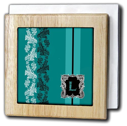 -. Brand : 3dRose -. Feature : Dimensions (in inches): 6 x 6 / Includes 2 - 4" x 4" high gloss ceramic tiles / Made out of solid wood / Tile panels connected by wooden dowels / Some assembly required -. Label : 3dRose LLC -. Manufacturer : 3dRose LLC -. ProductGroup : Kitchen -. ProductTypeName : KITCHEN -. Publisher : 3dRose LLC -. Studio : 3dRose LLC -. Title : 3dRose Russ Billington Monograms- Old Lace Initial L - Monogram Initial L in Teal White and Black Lace - Tile Napkin Holders