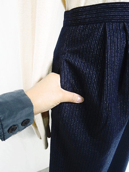 Ladies ブランド- カラー紺ベース メール便不可 コンディション★★★ モデル- 素材ウール40%・ポリエステル55%・その他5% 表記サイズ8 スタッフコメント裏地あり。 実寸サイズ 着丈 71 cm ウエスト 26 インチ( 66 cm) スリット 27 cm ※ウエスト・ヒップ以外は平置き採寸