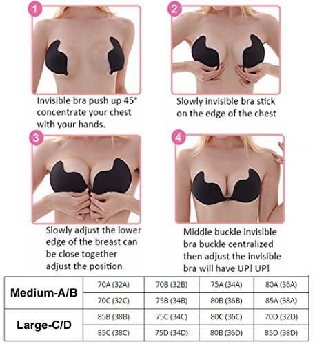 -. Feature : FRIENDLY SKIN ADHESIVE : Strapless bra is made of healthy and natural material.Contain High quality harmless biological gel.Wear the adhesive bra will be more comfortable / PUSH-UP DESIGN : Cute hand-shaped strapless bra create a busty and charming deep v shape breast.Helps achieve maximum cleavage without binding shoulder straps / WASHABLE & DURABLE : If you use the special mild detergent for sticky cleaning, also can be reused multi times. Keep your chest in a good position, sticky is strong / ESPECIALLY HOT TRENDS : Perfect for strapless and low-cut outfits, backless party dresses and tops.Instantly becomes a part of your body with total freedom and flexibility of movement, backless bra making you to be the absolute focus / RISK FREE PUCHASE : For 30 days after the date of purchase, return your undamaged product and receive a full refund for ANY reason. So if you are not completely happy with your purchase please contact us feel free