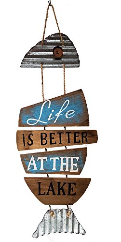 Lake House Decor Fish Wall Sign, Wood and Tin (Life is Better at the Lake)