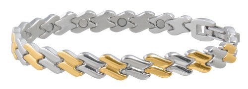 The Lady Executive Class Duet Magnetic Bracelet is the one of several additions to the stylish ladies line at Sabona. A combination of polished 18k gold plating and stainless steel make this bracelet very versatile. Each link contains a 1200 gauss magnet.Feature