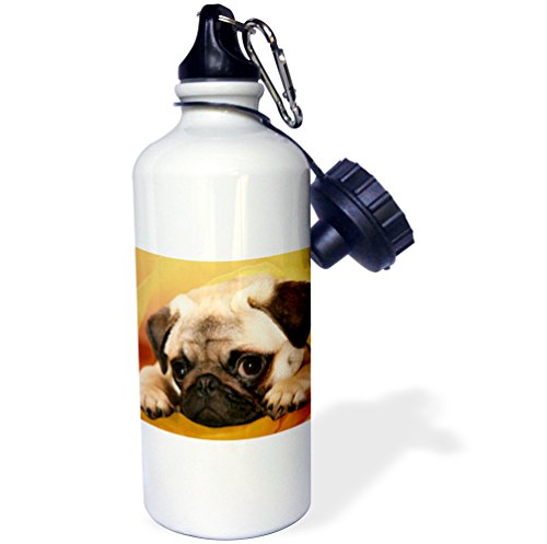 3dRose wb_3644_1 Pug Sports Water Bottle, 21 oz, White