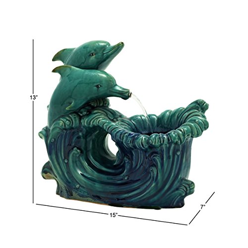 If you thought that fountains could only be life-sized and perfect for the outdoors then you will be pleasantly surprised after seeing this lovely ceramic fountain. A delightful creation, this fountain is perfect for smaller spaces of the indoors. Modeled on dolphins, one of which pours forth the water from its mouth, this is a creation that will surprise you with its ingenuity. Made using quality materials, this creation promises to last in great condition for years to come. This beautiful creation can be kept in the living room or the verandah. Whichever place you keep it in, it will add a beautifying factor that will give anybody goose bumps. It will look wonderful in a home that has all kinds of themes. A great gifting idea too, this ceramic fountain can be the perfect birthday present. So what are you waiting for order this cool fountain today!.Feature