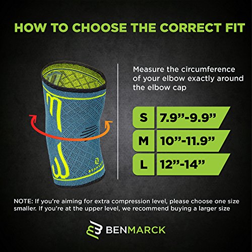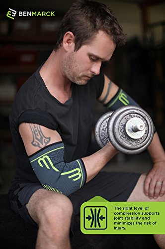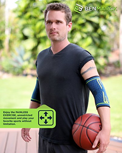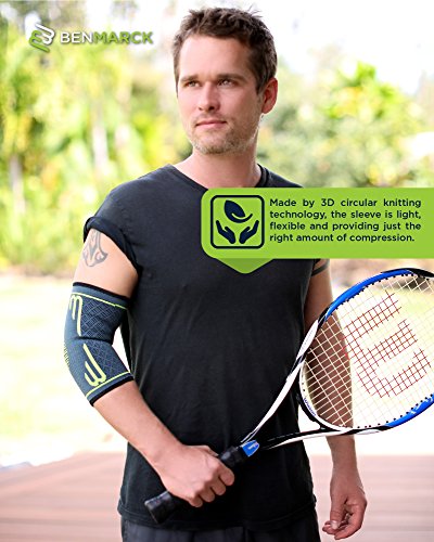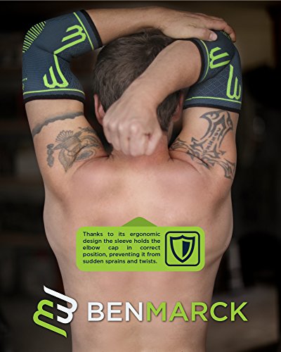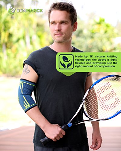 WE ARE ON A MISSION TO EASE YOUR PAIN, IMPROVE YOUR MOBILITY AND GET YOU BACK INTO ACTION! WHETHER YOU'RE A RUNNER, HIKER, TENNIS OR BASKETBALL PLAYER, OUR PRODUCTS WILL HELP YOU ENJOY YOUR FAVORITE ACTIVITY WITHOUT LIMITATION. MINIMIZE THE RISK OF INJURY Benmarck's top-quality compression sleeves provide perfect support while exercising, running or playing your favorite sport. It has been proven that by using it you can alleviate pain and minimize the risk of further injuries. The unique material drains away moisture and prevents odors. PREMIUM MEDICAL COMPRESSION SLEEVE ? Shape and profile of the sleeve ensures maximum adhesion to the elbow and unrestricted movement ? Low-profile design with non-slip material ? Special material drains away moisture ? Antimicrobial technology reduces odor ? Easy and fast maintenance - simply rub the brace with mild detergent, rinse thoroughly and let dry BENMARCK compression sleeve is a remarkable health aid that will help you return to active life. DON'T HESITATE AND CLICK 'ADD TO CART'. YOU WILL BE REFUNDED IF YOU'RE NOT SATISFIED. 0