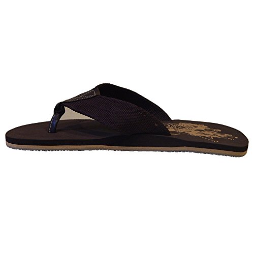 Binding : Apparel Product Description Beach-ready sandal with wide fabric thong for extra comfort. A classic thong sandal style with leatherette toe post. Insole will mold to your foot, traction outsole. It's one of the most basic items in your closet, but it has a long history. The name "flip flop" comes specifically from the sound the sandals make when they slap between the sole of your foot and the floor. This particular type of sandal originated as early as the Ancient Egyptians in 4000 BC, and the oldest known pair is on display at the British Museum from 1500 BC. This pair is made from papyrus, but just as a huge variety of cultures have worn these sandals through the years, they've used a great variety of materials. This style of footwear has been worn by the people of many cultures throughout the world, originating as early as the ancient Egyptians in 1,500 B.C. The modern flip-flop descends from the Japanese z?ri, which became popular after World War II when soldiers returning to the United States brought them back. They became popular gender-neutral summer footwear during the 1960s, 1990s, and 2000s, and some varieties have even found their way into more formal attire. Flip-flops are popular casual footwear for young adults and mature adults alike! 0