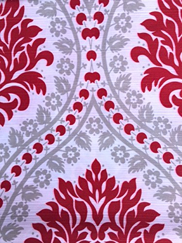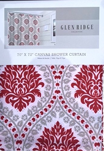 Measures 70" x 72" Inches. This red, grey, and white fabric shower curtain will make an elegant addition to your bathroom. The material is loose and flowing.