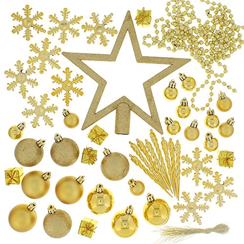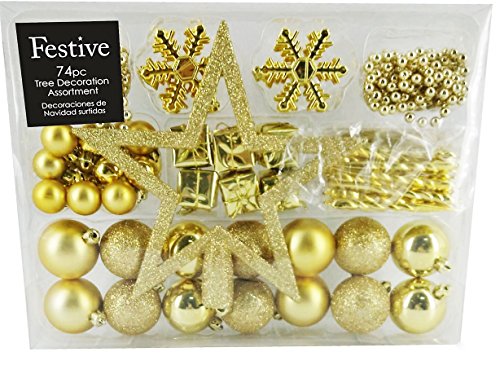Festive 74 Piece Assorted Christmas Ornament Set, Gold