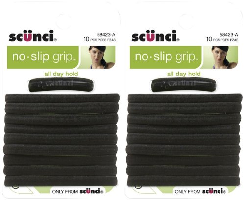 Scunci No Slip Elastic Hair Bands, Black, 10 ct, 2 pk