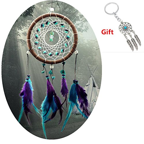 AWAYTR Forest Dreamcatcher Gift Handmade Dream Catcher Net With Feathers Wall Hanging Decoration Ornament (Turquoise Stone Feather Dream Catcher)