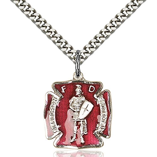 Sterling Silver St. Florian Pendant 3/4 X 5/8 inches with Heavy Curb Chain