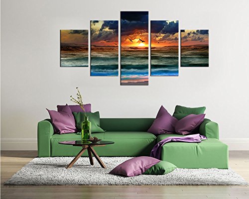 Large 5 Pieces Ocean Wave Art Canvas Wall Art Framed Ready to Hang for Home Decoration.Introduction: