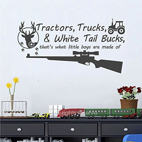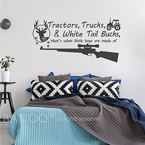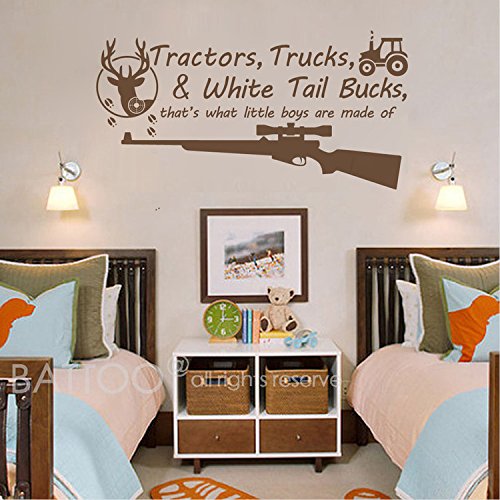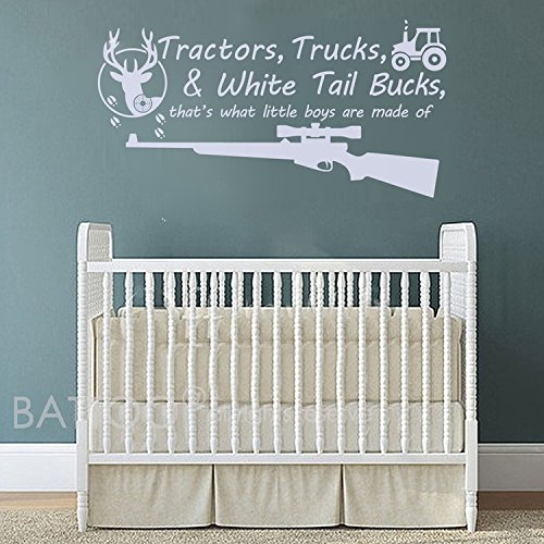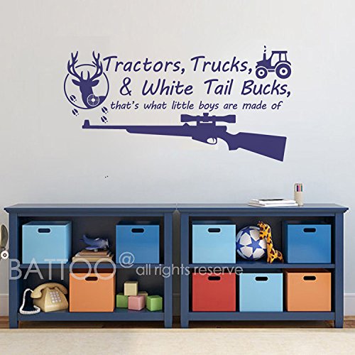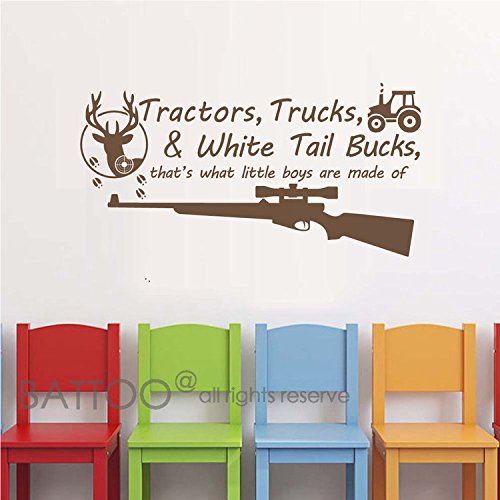 -. Title : BATTOO Tractors, Trucks White Tail Bucks - Little Boys Are Made of - Deer Tracks Boys Hunting Wall Decals Children Wall Decal Vinyl Art - Nursery Wall Vinyl Decal Vinyl