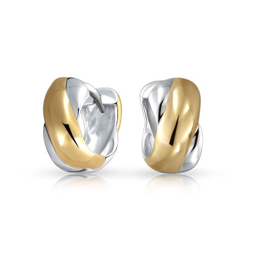Buy her a pair of elegant crossover huggie hoop earrings that will help her to finish off the look of any ensemble. Add a little dazzle to her everyday with our two toned crossover huggie hoop earrings. A simple but sophisticated design, our sterling silver huggie hoops are neat, chic and smart. Crafted entirely of 925 sterling silver, our crossover huggie hoop earrings are made with a gold plated X that lays on top of the sterling silver base, for a lovely and subtle three dimensional look. For a fresh and feminine look any day of the week, try a new pair of two tone huggie hoop earrings. Our small, crossover earrings are perfect for ladies of all ages. Each gold plated crossover earring opens on a hinge and snaps firmly back into place to fit snugly in each ear. They are lightweight and have a comfortable wearing feel. When you are looking in your jewelry box for a pair of go to everyday sterling silver earrings, you will find yourself reaching for these huggy hoops again and again. Whether you wear sterling silver jewelry or gold plated jewelry, these two toned huggie hoops will help accessorize your look and will match with all of your other jewelry. These small hoop earrings have a high polished finish and are perfect for everyday wear. Before you complete your checkout today, buy a pair for a friend who shares your sense of style. Please note these silver huggies are for pierced ears only.Feature