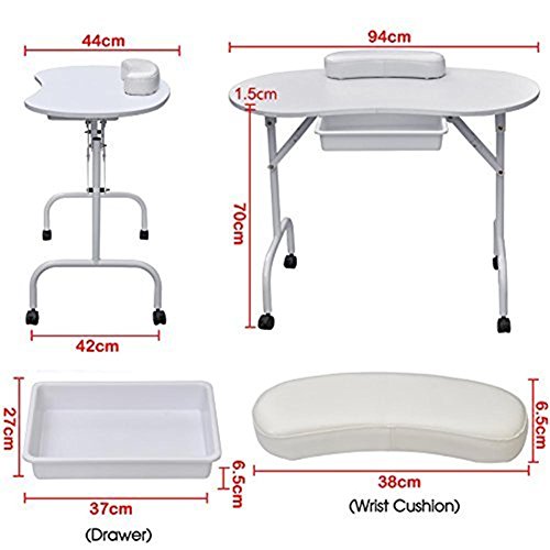 Product Description This Is Our Brand New And Portable Nail Care Desk Manicure Table Which Is Foldable And Comes With A Sturdy Carrying Bag For Storage. Equipped With 4 PVC Lockable Rolling Wheels, This Table Is Designed For Easy Movement. And The Durable Plastic Drawer Is Perfect For Your Accessories. Don't Hesitate To Buy One Now! 0