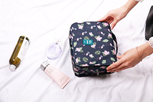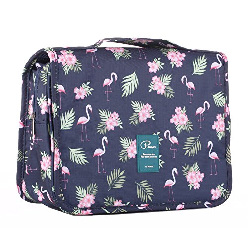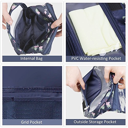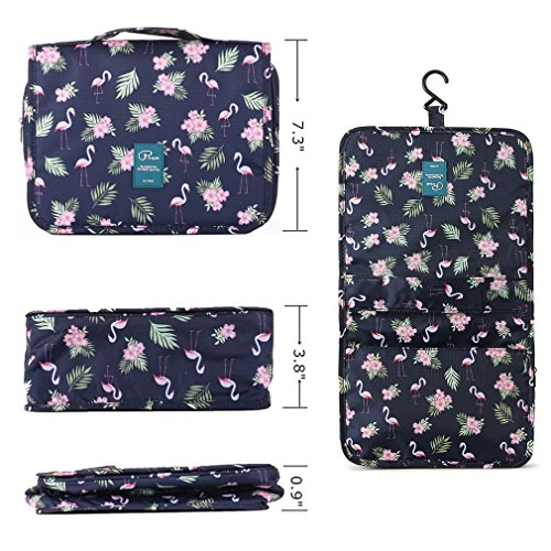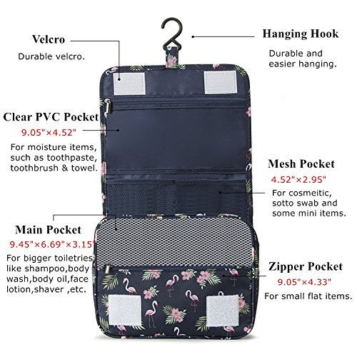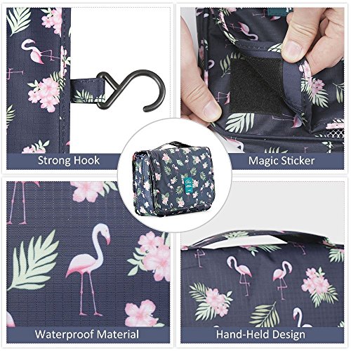Hanging Toiletry Travel Bag Cosmetic Carry Case Makeup Removable Pouch on Wall Clear Kit with Hook for Women Nylon Organizer Bathroom Storage for Vacation (Flamingo)