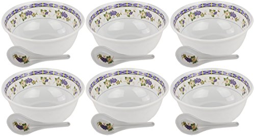 Asian Soup Spoons Bowls - Melamine White Chinese Spoon Pho Rice Miso Bowl 6 Set by bogo Brands -- Japanese dinnerware set includes 6 ladle style spoons and 6 soup bowls with a stylish design. The deep and oval design shape make it easier to scoop soup broth and other delicious ingredients all at once for bursts of flavor in every bite. Take your Asian inspired meal to the next level with our 6-inch wide bowls. Perfect for serving and eating Pho, Soba, ramen noodles, miso soup and rice dishes. This set is commercial grade quality which is ideal to use in your home kitchen, restaurants, catering, banquet or party halls. This durable kitchenware is 100% non-toxic melamine, food safe, heat and scratch resistant, easy to clean and dishwasher safe.Feature
