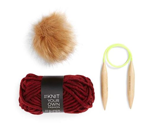 - KIT INCLUDES: 100% Acrylic Yarn 120g (27 yds/ 25 m), 1 Faux Fur Pom Pom, Circular Wood Needles (US36/ 20mm), Simple Instruction Book & Personalization Label