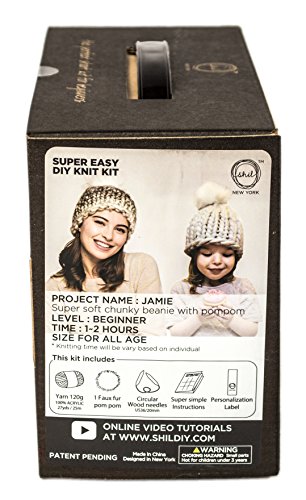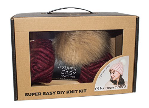 - David & Young Super Easy DIY Knitting Kit, Super Soft Chunky Beanie with High Quality Faux Fur Pom Pom
