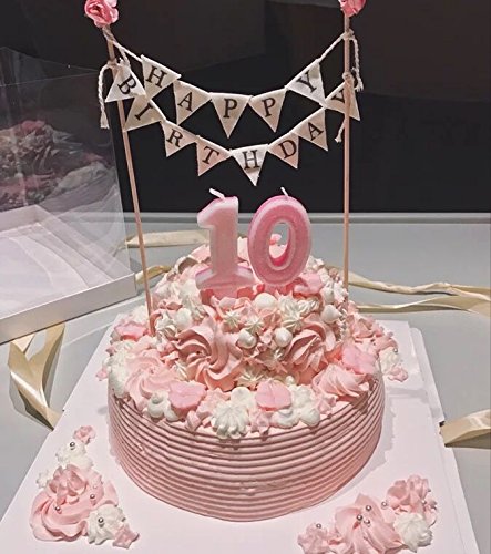 Happy Birthday Cake Bunting Topper Cake Topper Garland, Handmade Pennant Flags with Wood Pole Ivory Pink Roses | Birthday Party Cake Decorations | Fast Amazon Logistics and 100% Refund Service