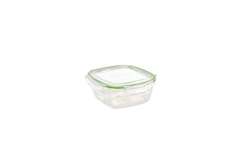 Marinex Facilita Square Glass Bowl with Plastic Locking Lid, 10-Ounce, Clear