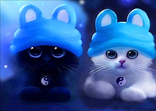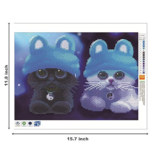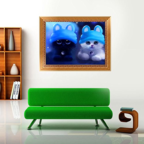 DIY 5D Diamond Painting by Number Kit, Lovely Cat Crystal Rhinestone Embroidery Cross Stitch Arts Craft Supply Canvas Wall Decor