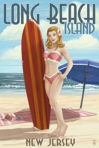 (Lantern Press)/Bedding Bath/Bedding/DIRECT FROM USA/Long Beach Island, New Jersey - Pinup Surfer Girl (88x104 King Microfiber Duvet Cover)