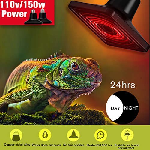 D-FLIFE Original 2018 New Infrared Heat Lamp 150W 110V Ceramic Heater Natural Heat Emitter Appliances Lamp Bulb Pet Brooder Grow Bulb for Reptile Terrarium, Chick Coop and Amphibian Use (Piano Black)