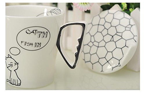 Kitty Cat and Fish Bone Milk Tea Coffee Water Mug Cup Wedding Gift Birthday Gift (Brown Spider Web)