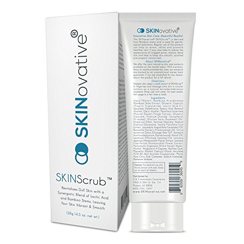 SKINovative® SKIN Scrub is a Synergistic Blend Of Ultra Fine Bamboo Stems and Lactic Acid that is Rich in Antioxidants. The ideal candidate suffers from comedone pore congestion, sun damage, and wrinkles and wants to achieve youthful vibrant skin but can't find an Amazon product that provides sufficient exfoliation to peel off dead skin cells and clear pores on the face, feet and body. Without proper exfoliation you won't achieve the results you're looking for and your skin will remain congested dull and lifeless! This ultimately means you won't look your best and your self confidence will suffer. A common misconception is that all exfoliants are equally effective and that you should just buy the least expensive skin removal products or scrubbers. Nothing could be further from the truth. Quality ingredients do matter and determine how well they exfoliate and reveal the younger looking skin that lies beneath the surface. SKINScrub is rich in natural ingredients - bamboo stems and lactic acid. So if you're a Man or Woman with problem skin Including Acne, Wrinkles, Sun Spots, Cellulite or Scars who wants to uncover smoother younger-looking skin then this is the product you've been looking for! 0 |