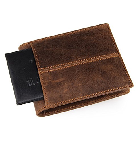 -. Title : Men's Genuine Leather Bifold Wallet With Zipper Coin Pocket ID Window Card Case