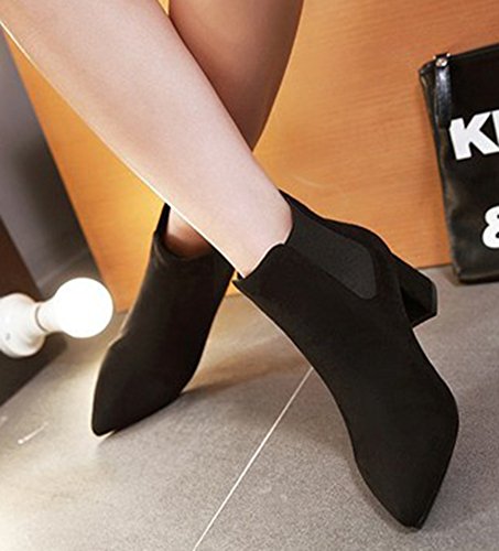 Binding : Apparel Product Description This pair of shoes is for women, girls, young ladies and brides. You will look sexy and elegant when wearing them. The heels measure 2.4 inches. You will feel comfy in their block heels. This pair of shoes features ankle high and solid waterproof upper. The design of pointed toe will make you more sexy. The elastic pull on closure is easy for get on and off. You could wear them with jeans, dress and skirts. The sole is made of good rubber. It's really lovely and comfortable. SHOWHOW is a well-established fashion shoe brand which carries stylish and affordable women's footwear. We promise will offer you excellent shopping experience. Welcome and pick what you want! 0