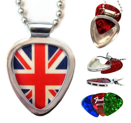 - Feature : stainless steel expeertly engineered plectrum holder / functional guitar pick holder / Union Jack guitar pick necklace / 1,000 necklace in one / Brilliant gift item