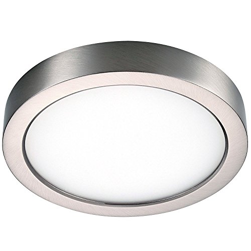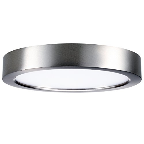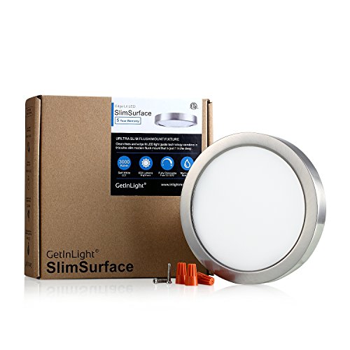 GetInLight Round 6-inch Dimmable Flush Mount Ceiling Fixture, (2nd Generation), 11 Watt, Brushed Nickel Finish, 3000K Soft White, 65W Replacement, Damp Location Rated, ETL Listed, IN-0306-1-SN