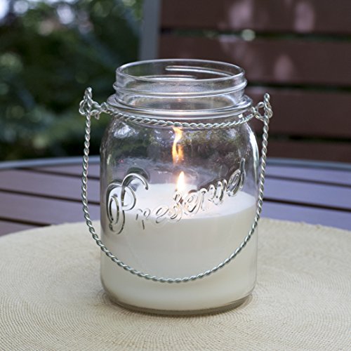 Patio Companion P09642 Citonella Color Mason Glass Jar with Words & Wire Handle, Clear - Fresh, Citrusy Smell Natural Insect Repellent