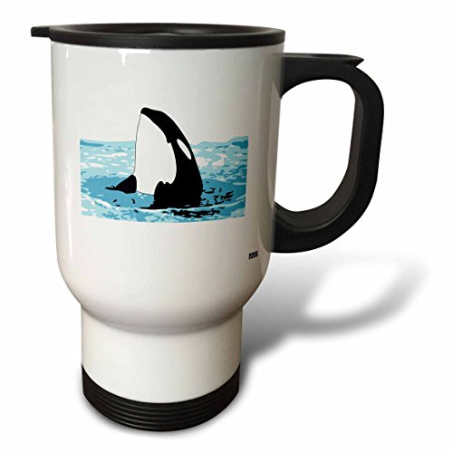 3dRose tm_47368_1 "Killer Whale ( Orcinus Orca ) On Surface of Water Stainless Steel" Travel Mug, 14 oz, Natural