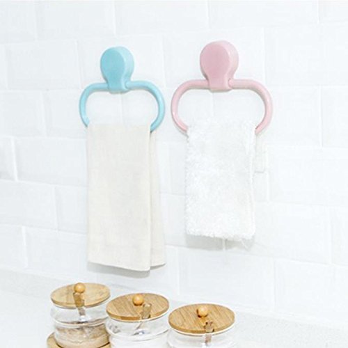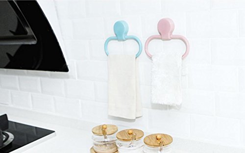 LK-WORLD 360 degree rotating and pasting towel ring, bathroom towel hanger, kitchen rag hanger (Blue)
