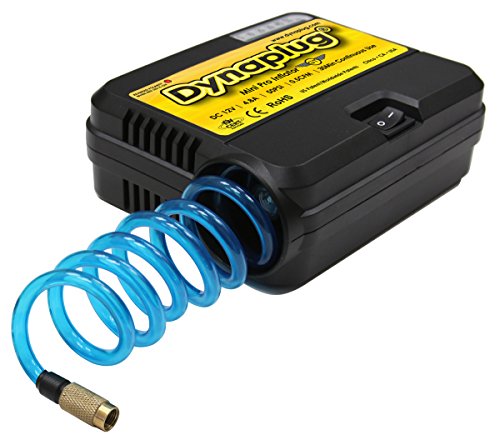 FEATURES: Comes with the Dynaplug MINI PRO 12V air pump. Convenient recoiling air hose has a solid brass Zero Loss Inflation valve stem connector. Fan cooled motor is permanently lubricated, maintenance free and designed for run-time up to 30 minutes.