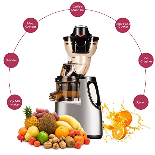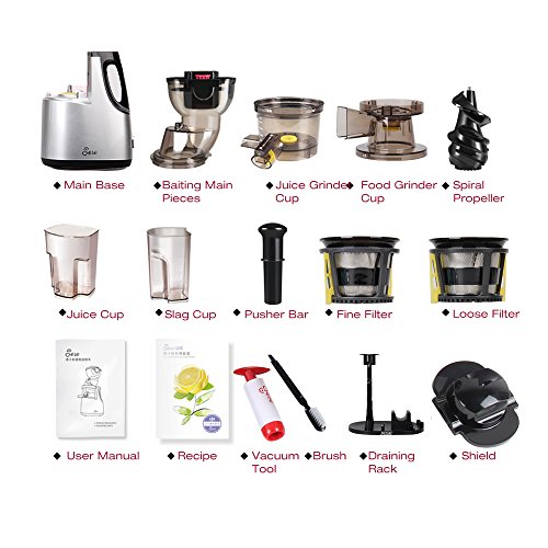 ALL-IN-ONE MULTIFUNTIONAL JUICER: Jese extra-slow masticating juicer integrates perfect multifunction of coffee machine, ice shaver, ice cream machine, baby food maker, soy milk maker, blender, meat grinder into one juicer. All your needs can be satisfied with just one Jese juicer in your kitchen.