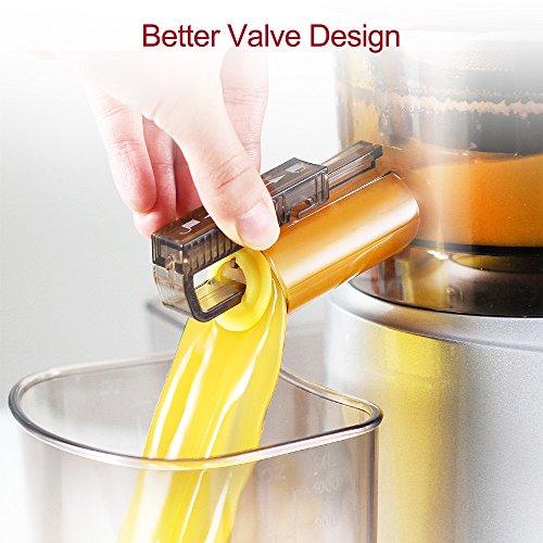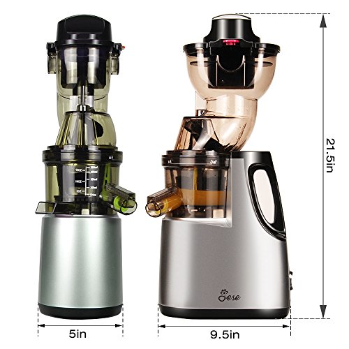 3.4'' Large Mouth and Extra-wide ChuteJESE Slow Masticating Juicer features a large mouth and wide chute, which makes it easier to prepare the ingredients. And the unique 360 degrees clamshell design makes it more convenient to feed the fruits and vegetables as you wish.